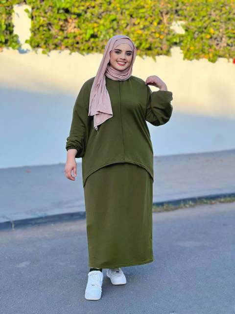 أناقة بسيطة ومحتشمة في طقم واحد! هذا الطقم العصري يجمع بين التوب الأنيق والجيبة الطويلة بتصميم مونطوني راقٍ يناسب المرأة المغربية في يومها اليومي وكل مناسبة.