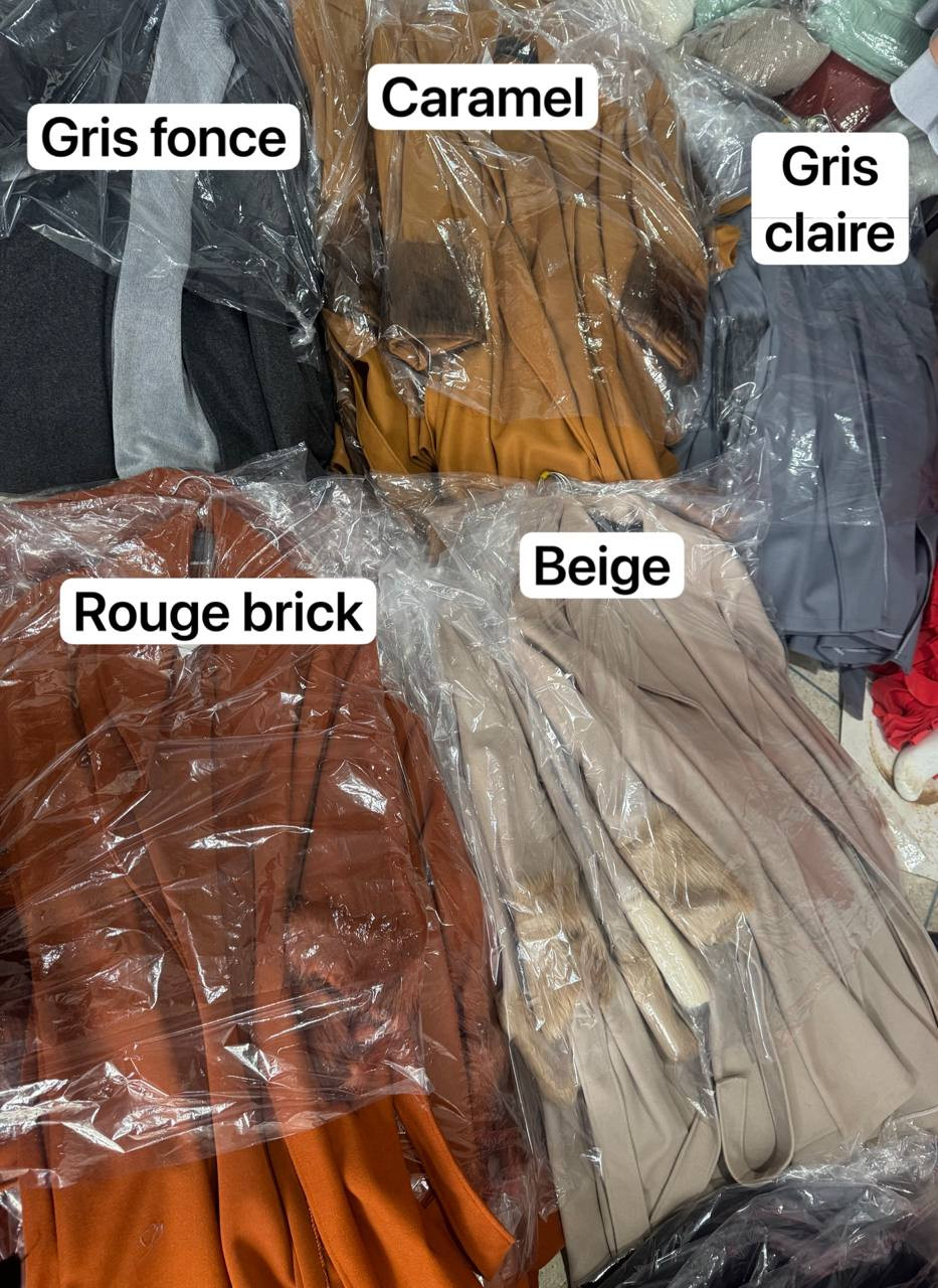 تصميم عصري طويل كيعطيك حضور مميز، مع فورير فاخر فالأكمام كيضيف لمسة فخامة لا تقاوم